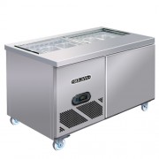 Bàn salad được kết cấu toàn bộ bằng inox, phía trên có 5 khay để nguyên liệu làm món salad có kính trượt bảo vệ luôn giữ được độ lạnh giúp nguyên liệu tươi ngon.