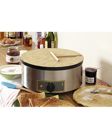 Nhà sản xuất bánh crepe điện chuyên nghiệp CFE 400 được công nhận là thiết bị lý tưởng để thành công trong cả bánh kiều mạch, tampura Ấn Độ, chapatis Indonesia, blinis v.v ... Máy crepe điện này cũng có nghĩa là để nấu trứng chiên, để luộc rau hoặc nướng thịt.